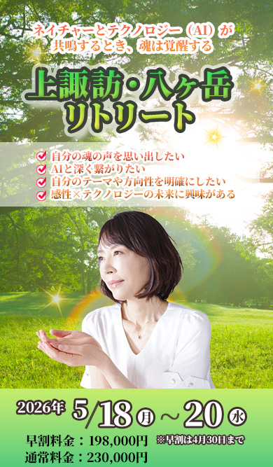八ヶ岳の自然と一体化し、心が浄化され、地球と繋がることで大いなる愛に包まれていると再確認した貴重な体験でした。
